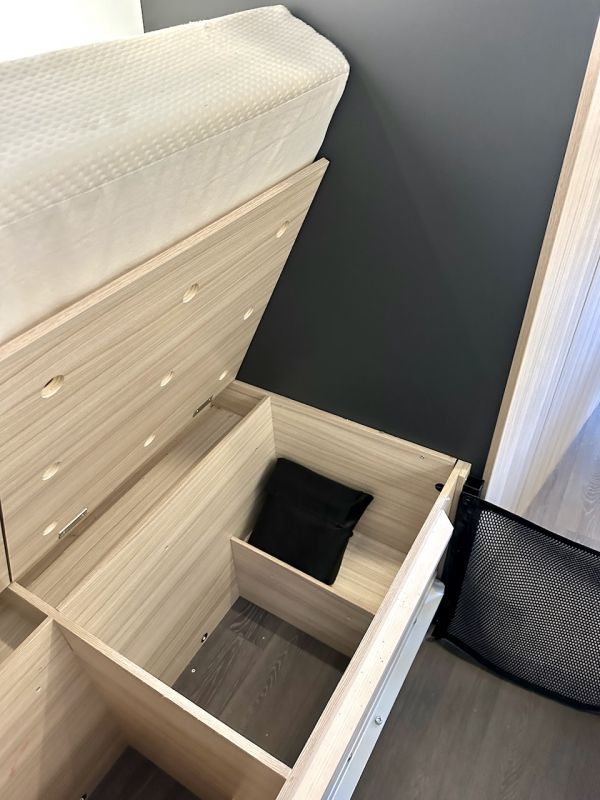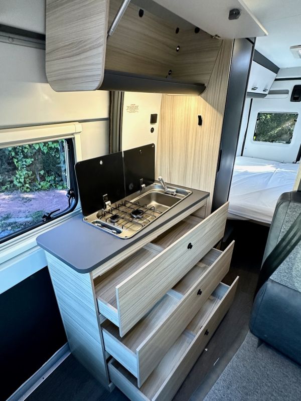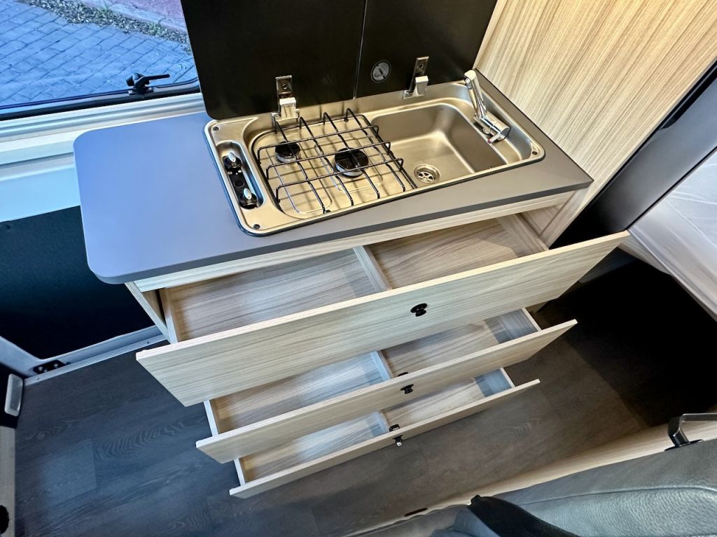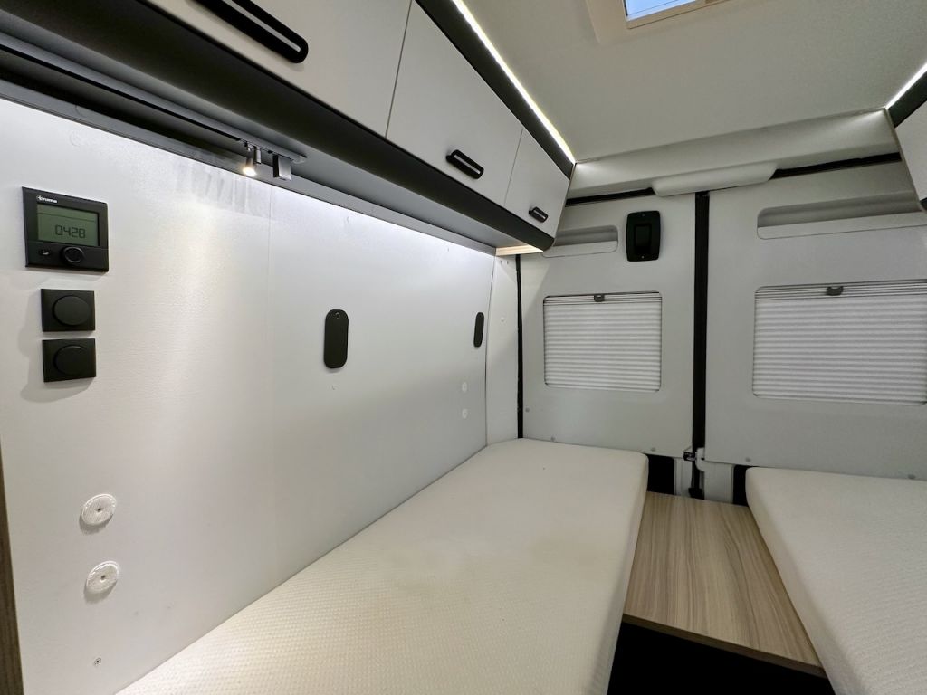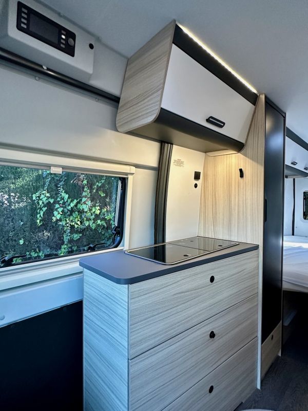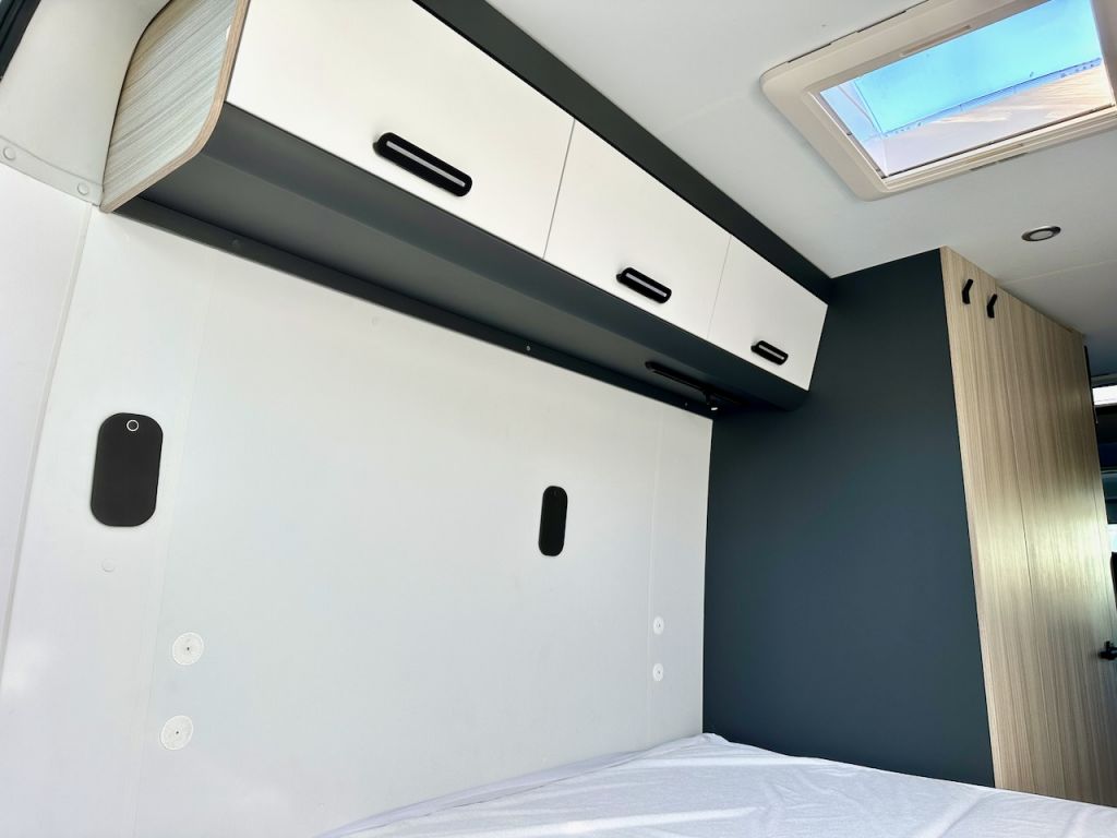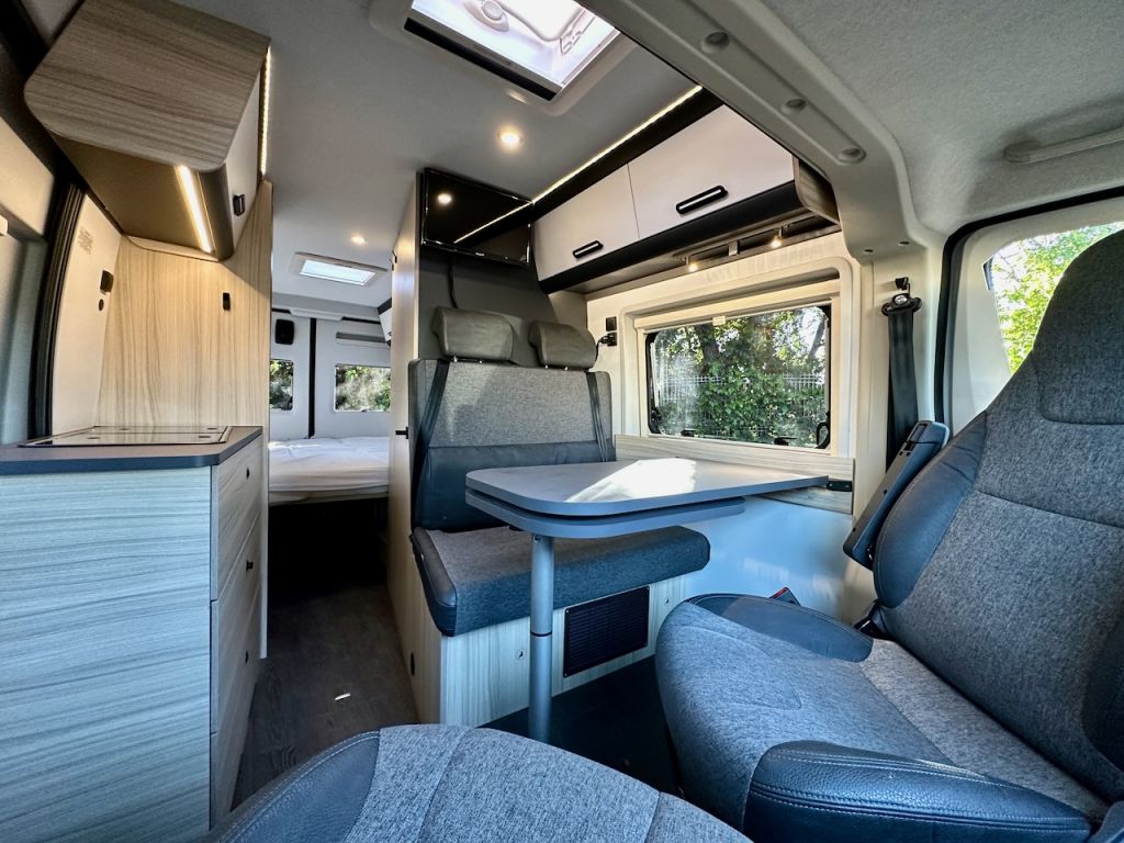 Confort Pack; Placa solar 180W; Batería 100Ah; Equipo multimedia Pioneer 6,8" compatible con CarPlay y Android Auto; Cámara trasera; Smart TV 19"; Antena TV omnidireccional; Alarma antirrobo volumétrica; Alarma de gases;