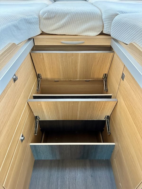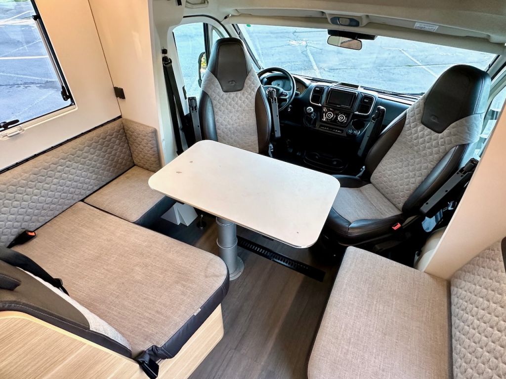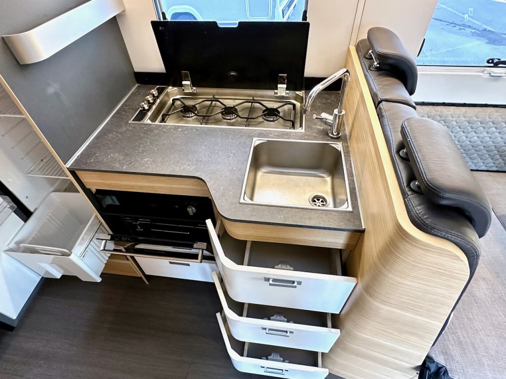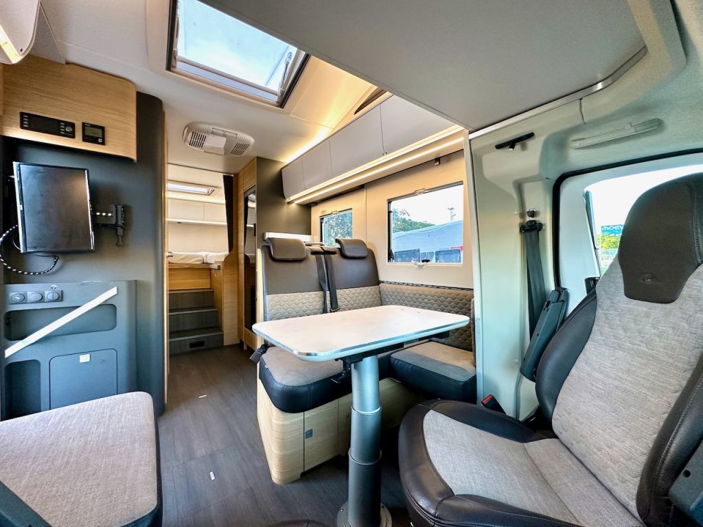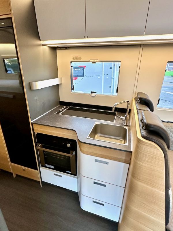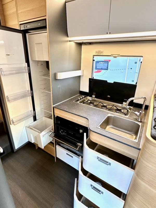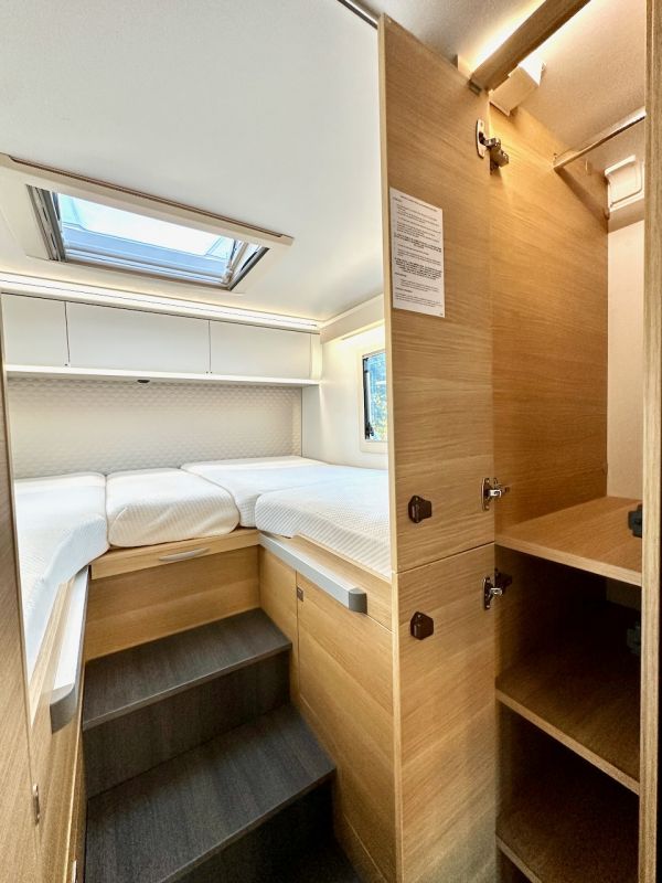 Autocaravana capuchina Adria Coral XL Axess 660 SL del año 2024. Distribución de camas gemelas y cama de matrimonio en la capuchina. Comedor clásico en L con asientos de cabina giratorios. Cocina completa con nevera de 130 litros. Baño con ducha.