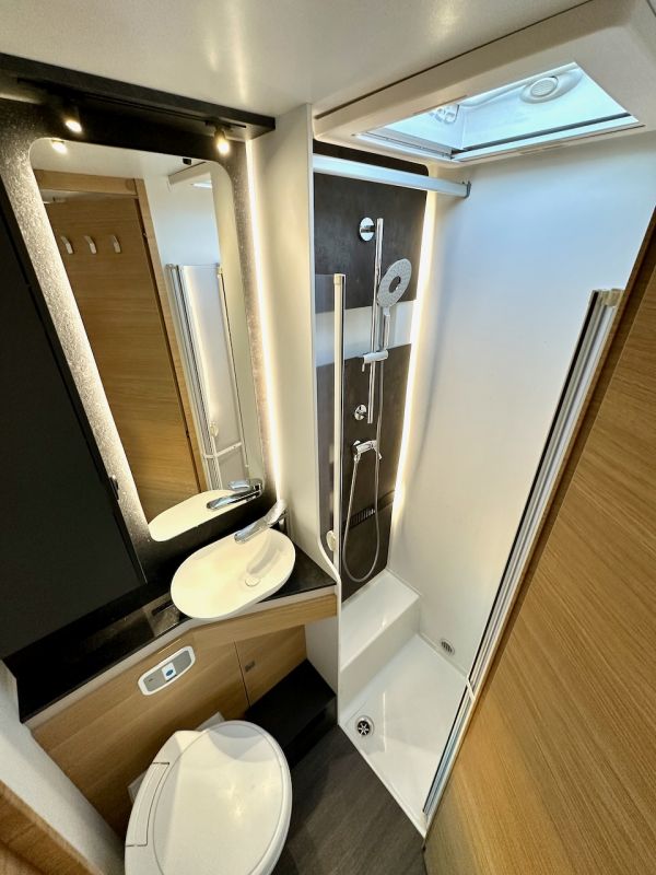 Toldo; Aire Acondicionado; Equipo multimedia Pioneer; Cámara trasera; Placa solar 180W; Batería 120Ah; Alarma antirrobo volumétrica; Alarma de gases; Cierres de seguridad; Inversor 600W onda pura; Confort pack Adria