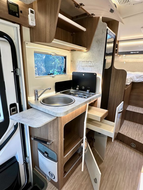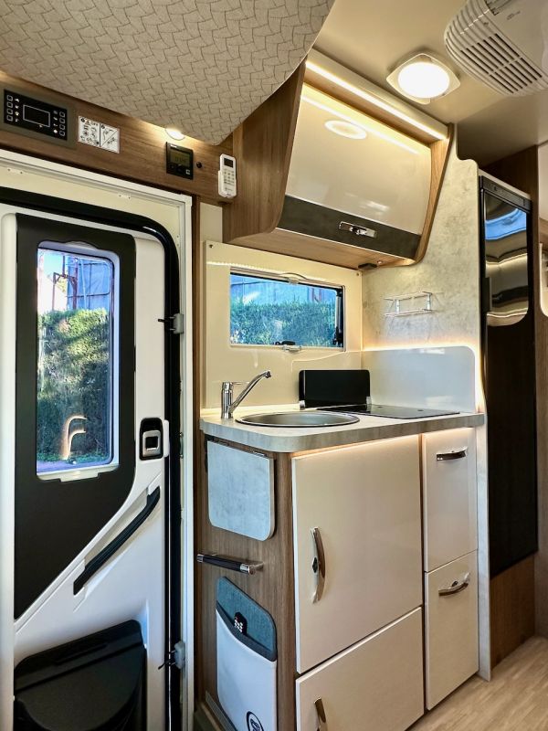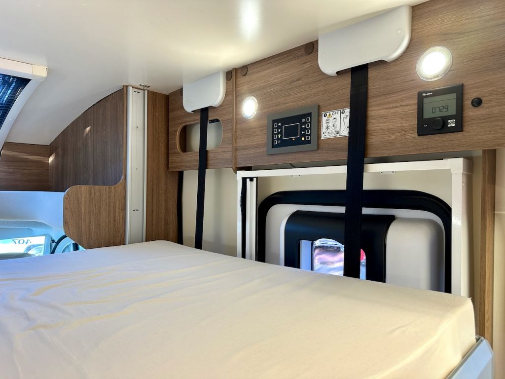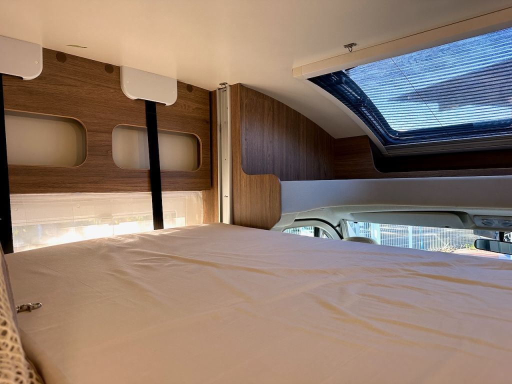 Aire acondicionado en vivienda; Faros antiniebla con giro; Llantas 16"; Traction+; Controles en volante; Placa solar; Cámara trasera; Oscurecedores cabina; Toldo; Toma de gas exterior; Toma ducha en garaje; Toma exterior de TV; Guías y anclajes en garaje; Isofix; Batería 120 Ah; Equipo multimedia Pioneer; TV 18,5"; Antena TV omnidireccional; Alarma antirrobo volumétrica; Alarma de gases; Inversor 600W onda pura; Cierres seguridad;