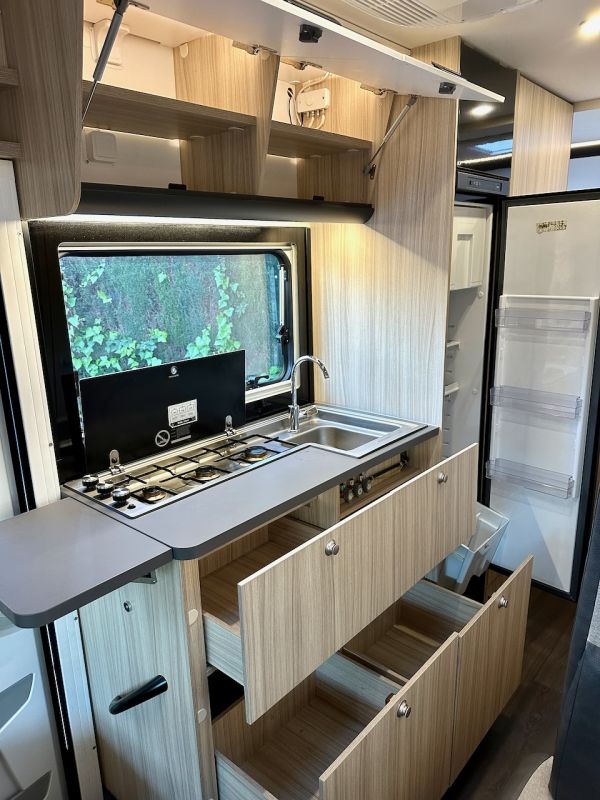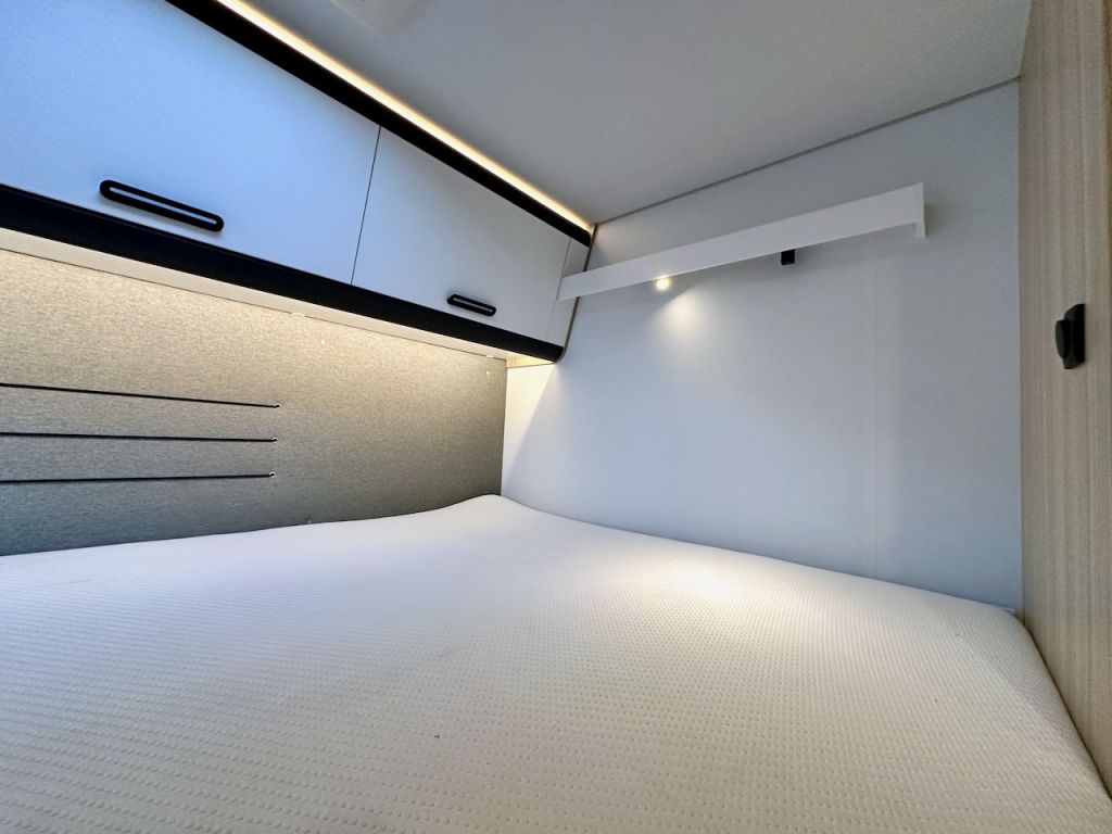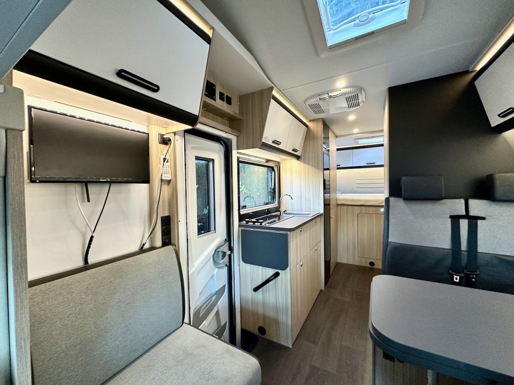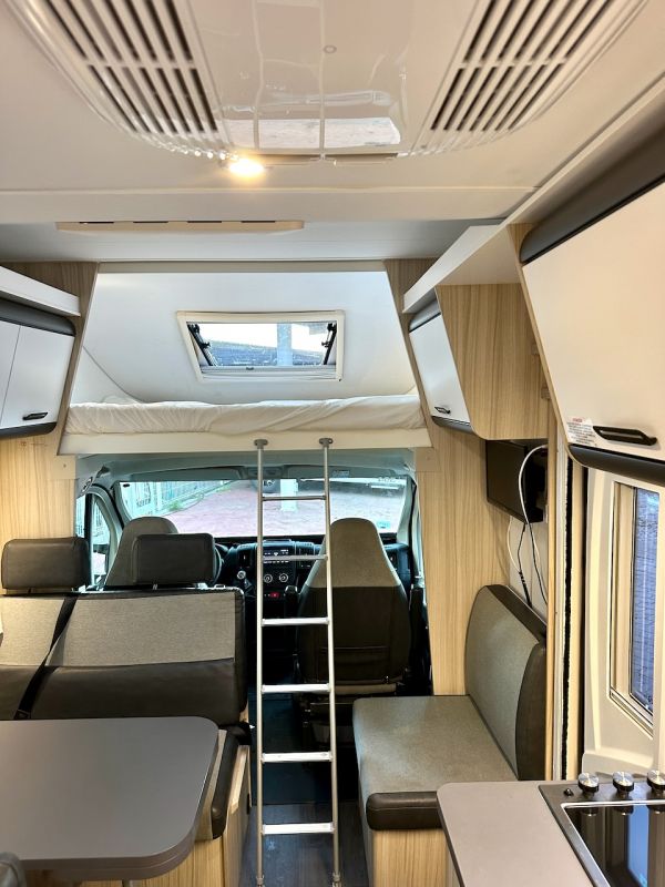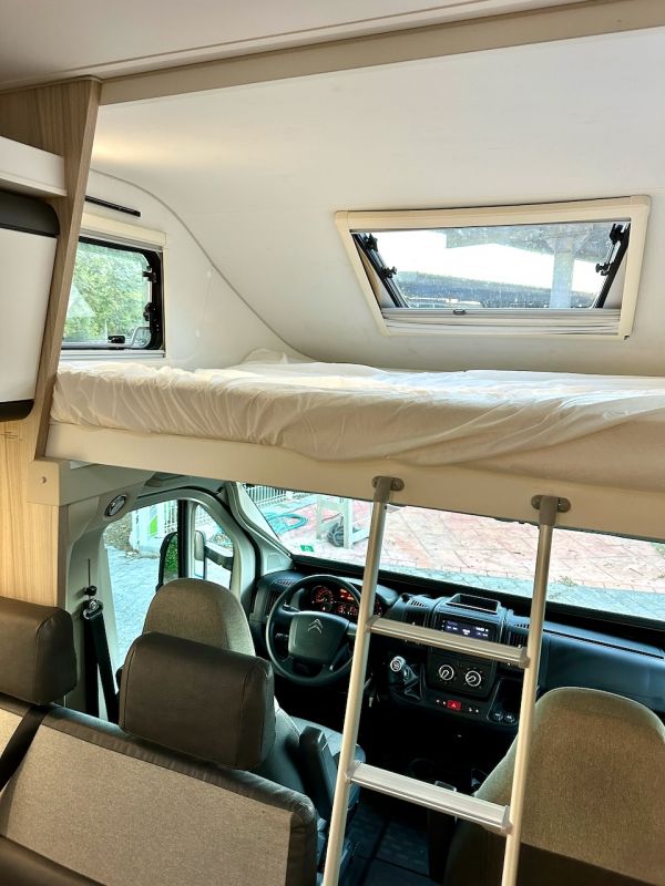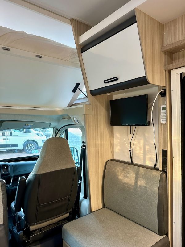 Aire acondicionado; Toldo; Batería 120 Ah; Placa solar 180W; Inversor 600W onda pura; Equipo multimedia Pioneer; Cámara trasera; TV 18,5"; Antena TV omnidireccional; Alarma antirrobo volumétrica; Alarma de gases;
