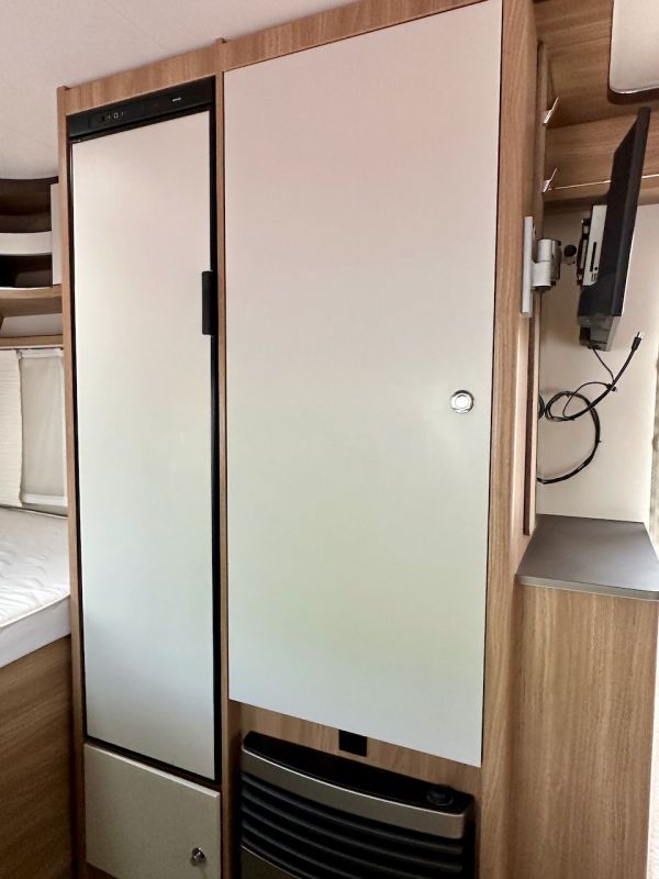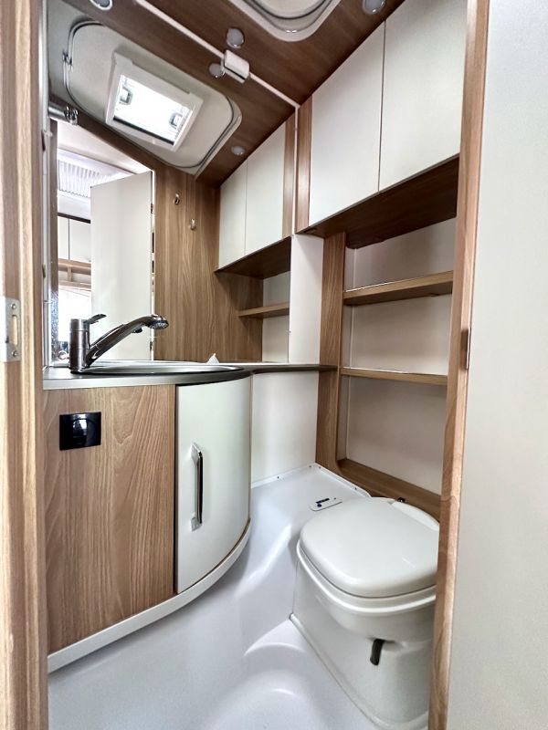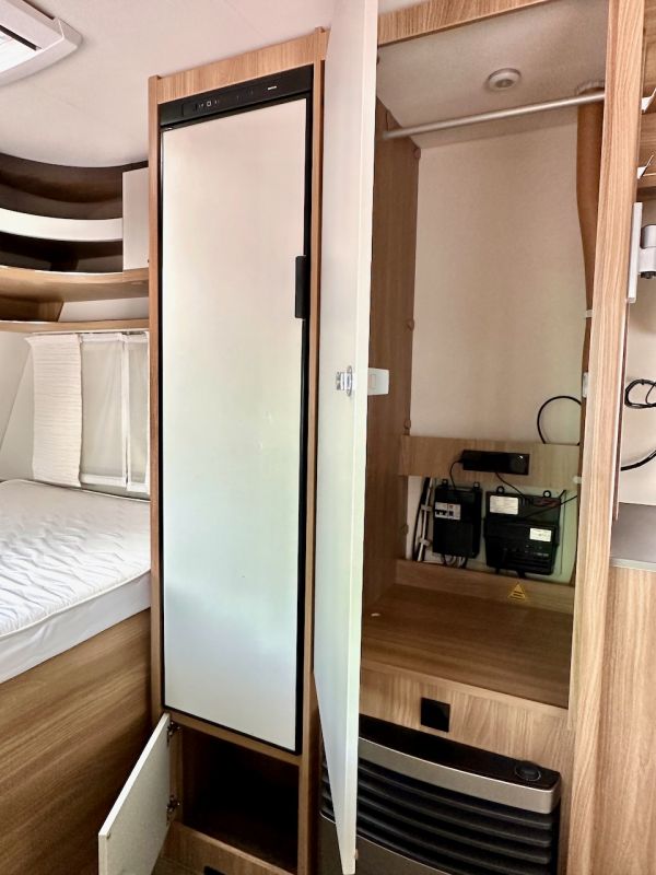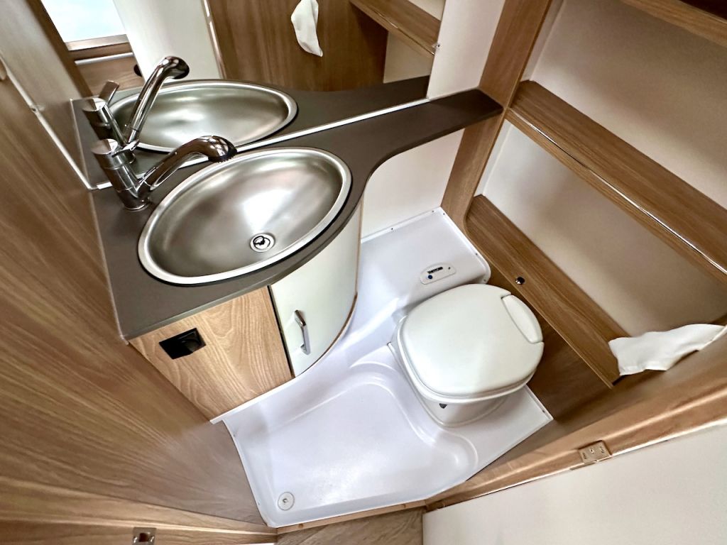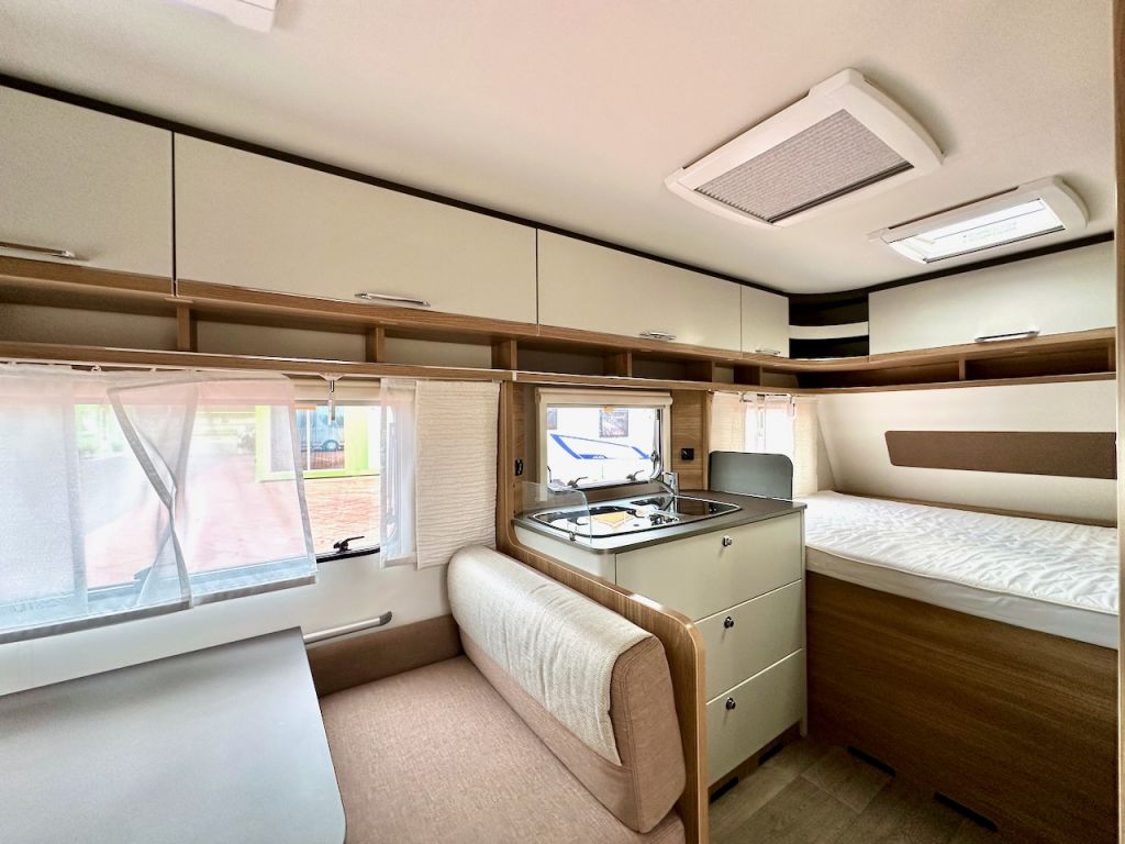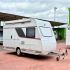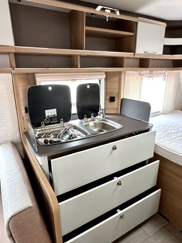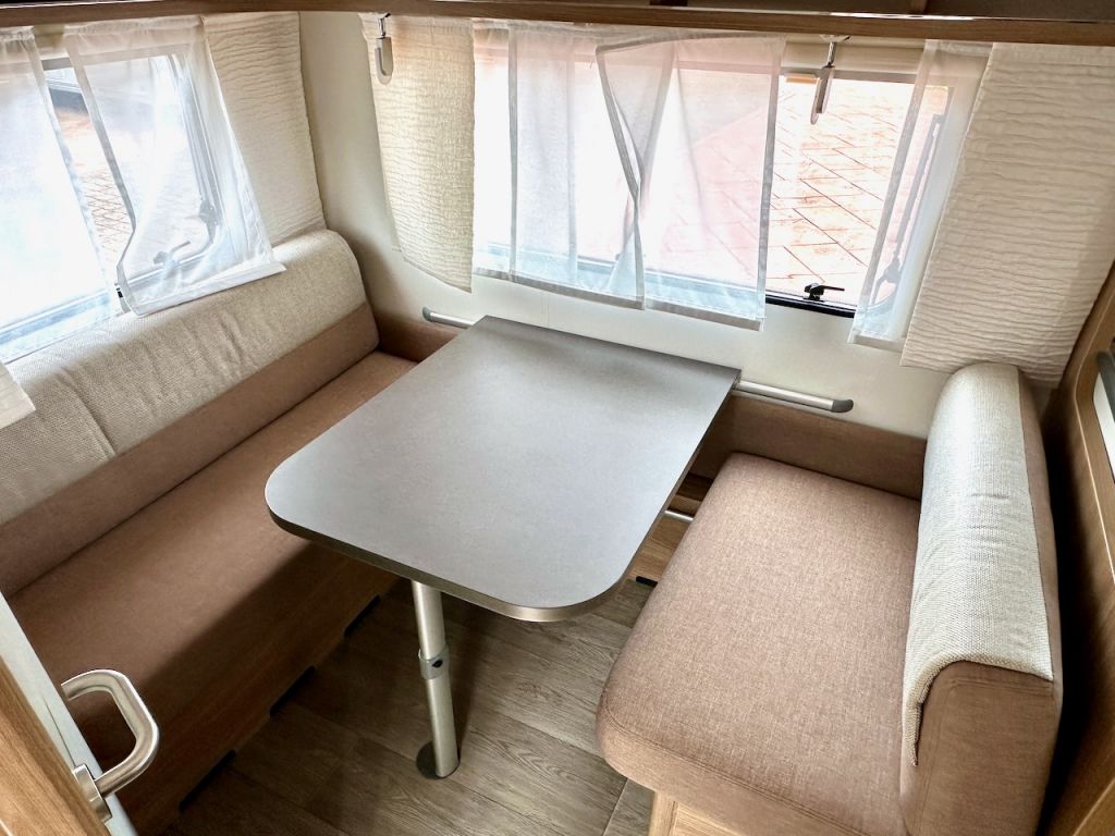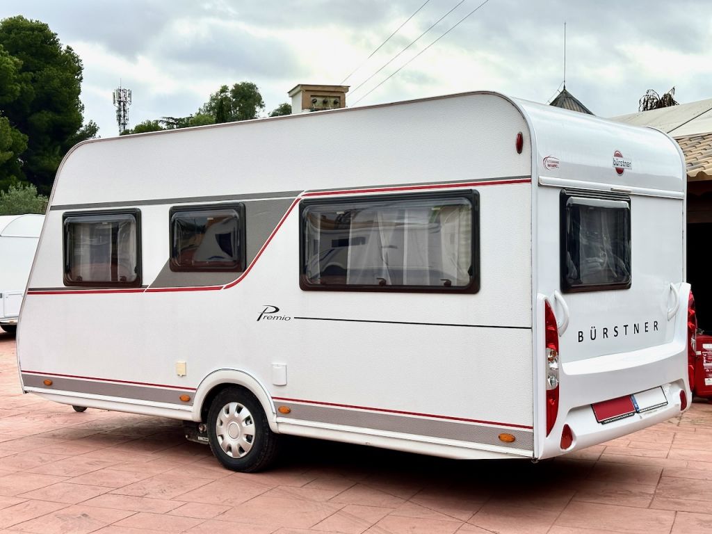 Caravana de ocasión Bürstner Premio 395 TS del año 2022, distribución de dos ambientes con cama transversal, cocina completa con nevera de 130 litros, comedor enfrentado y baño con ducha. PMA 1.250 Kg.