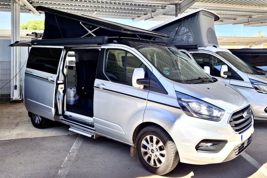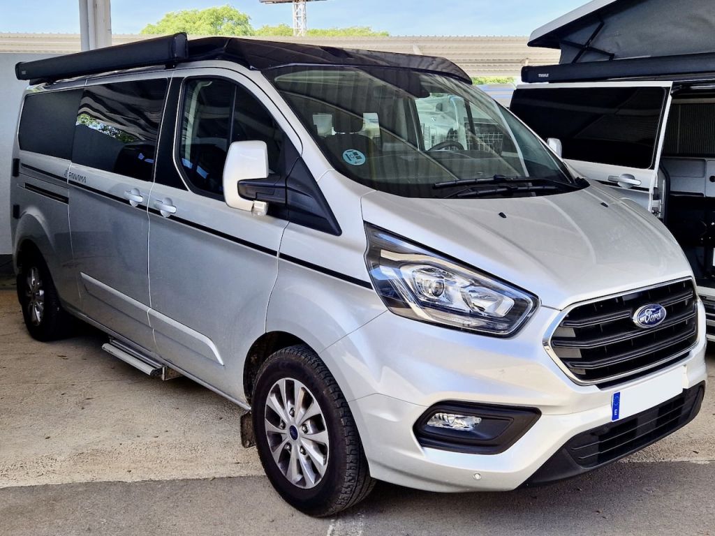 Furgoneta Camper de techo elevable Panama P54+, con cama en el techo elevable para dos personas, cama desplegable para dos personas sobre los asientos traseros, comedor con mesa montable, cocina con dos fogones y ducha exterior. * Vehículo de flota de alquiler: El kilometraje puede variar si el vehículo está en ruta en el momento de tu visita. Por favor, contacta con nuestros asesores para solicitar fotos e información actualizadas.