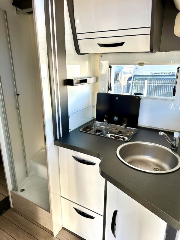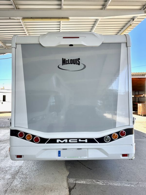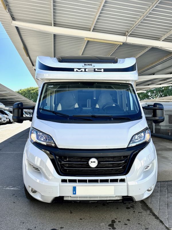 Autocaravana perfilada McLouis MC4 379, con distribución de cama isla, cama suspendida sobre el comedor, comedor en L con asientos de cabina giratoriosz, cocina completa con nevera de 134 litros, baño y ducha independientes. * Vehículo de flota de alquiler: El kilometraje puede variar si el vehículo está en ruta en el momento de tu visita. Por favor, contacta con nuestros asesores para solicitar fotos e información actualizadas.